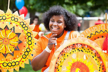 Acton Carnival 2018. This year we had used a sun theme. Young people help to make the costumes and lanterns and danced and drummed along the parade route.
